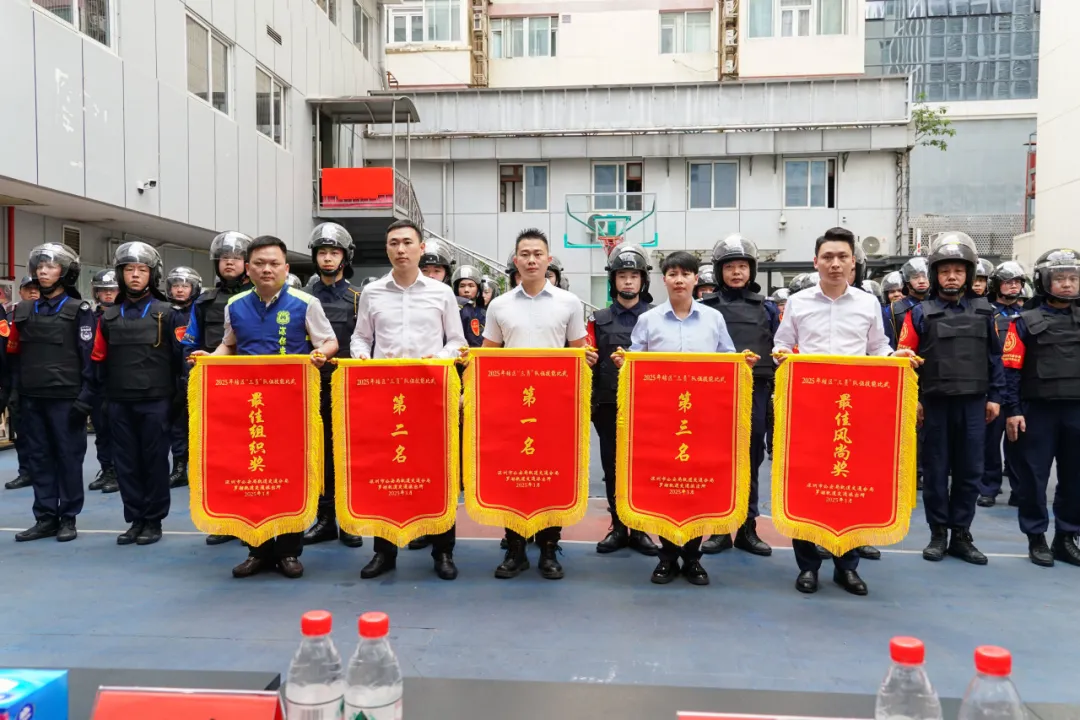 本次大比武共有来自6条地铁线路的13支精英队伍同台竞技,鹏祥保安选派深圳地铁6号线安检与7号线安保两支精英队伍参赛。其中,深圳地铁6号线安检团队凭借过硬技能和协同配合,在比武中脱颖而出,最终荣膺第一名。