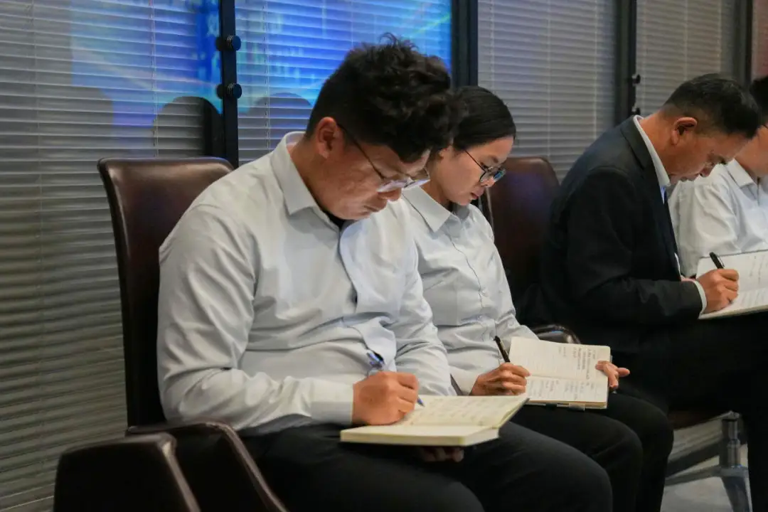 公司董事长夏明明、常务副总经理刘康及各部门中高层管理人员参加,异地项目管理干部线上参会,第一时间将公安机关的要求转化为公司的行动纲领。